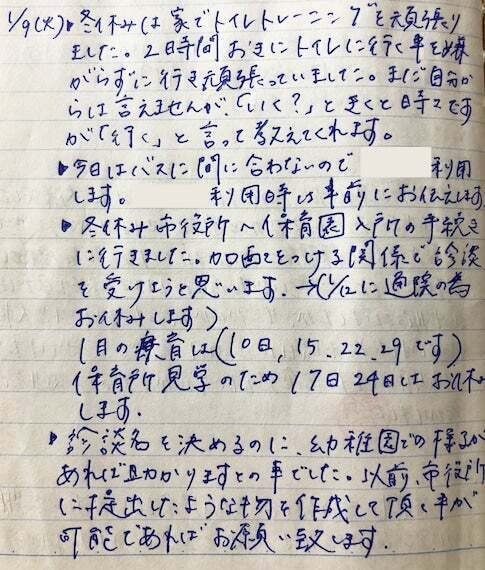 お子様の成長に不安がある方はこういったブログ(非公開)や日記でもいいので記録をとっておくことをお勧めします。これから子育てしていく中でこのような記録がとても重要になってきます。