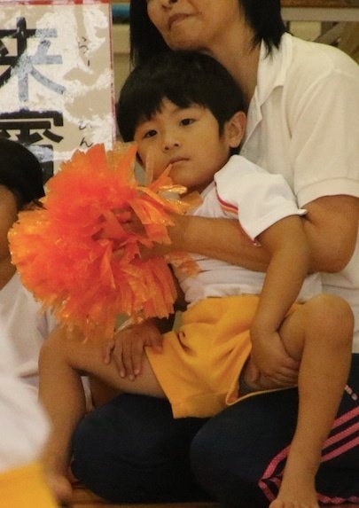 朝陽が自分の出番を待ってる時は補助の先生がつきっきりです。