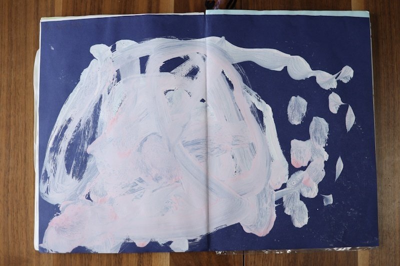 上の写真は息子がもちを描いた作品です。お餅がふくらんで破裂したんでしょうね笑