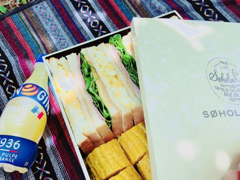 お弁当作る時間もなくサンドイッチととうもろこし・・・