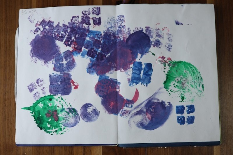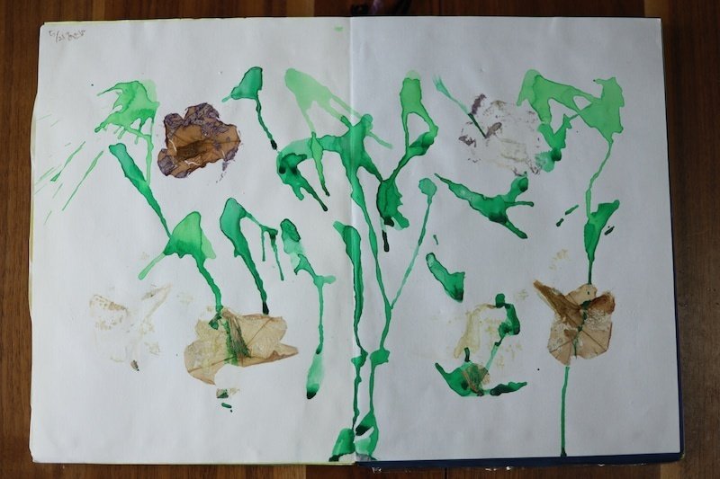 これはストローでたらした絵具をふーっと吹くやつです(吹き絵?)