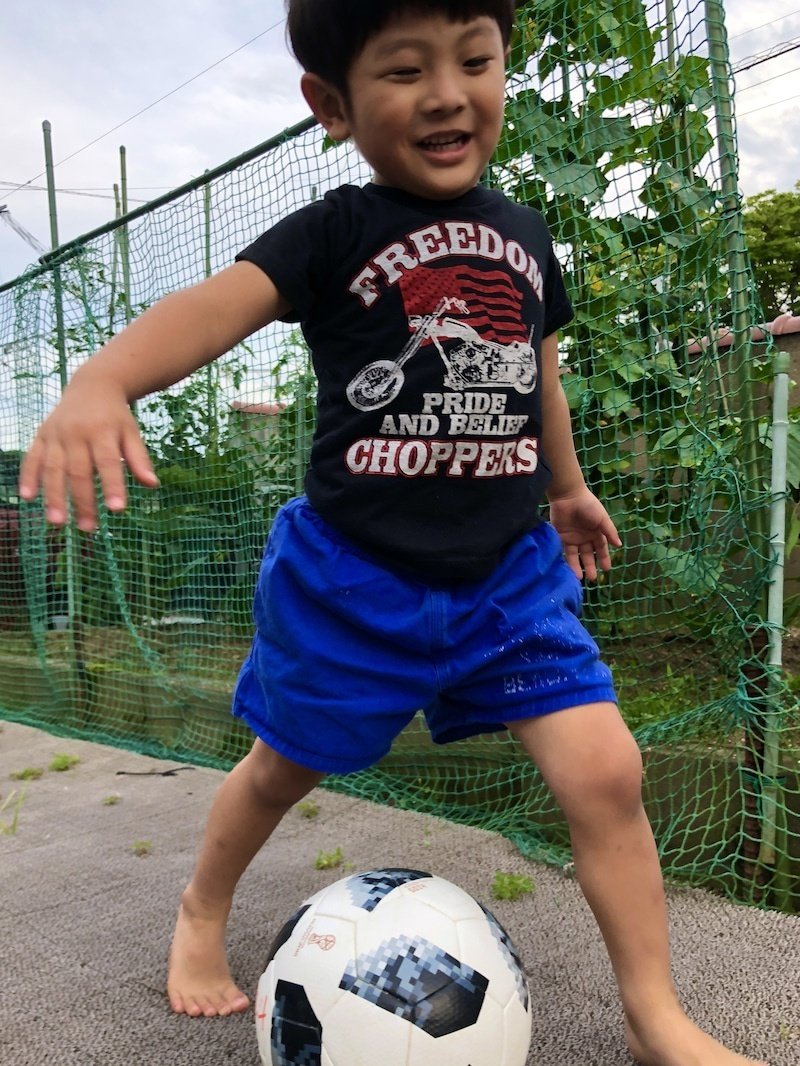 ワールドカップが始まり お兄ちゃんの影響でサッカーに興味を持っていた息子ですがこの時期からプールに興味を持つようになりました