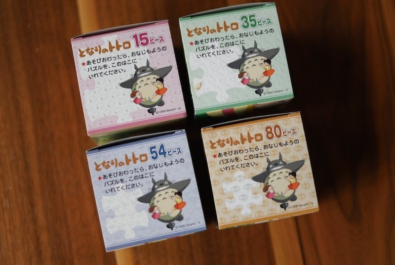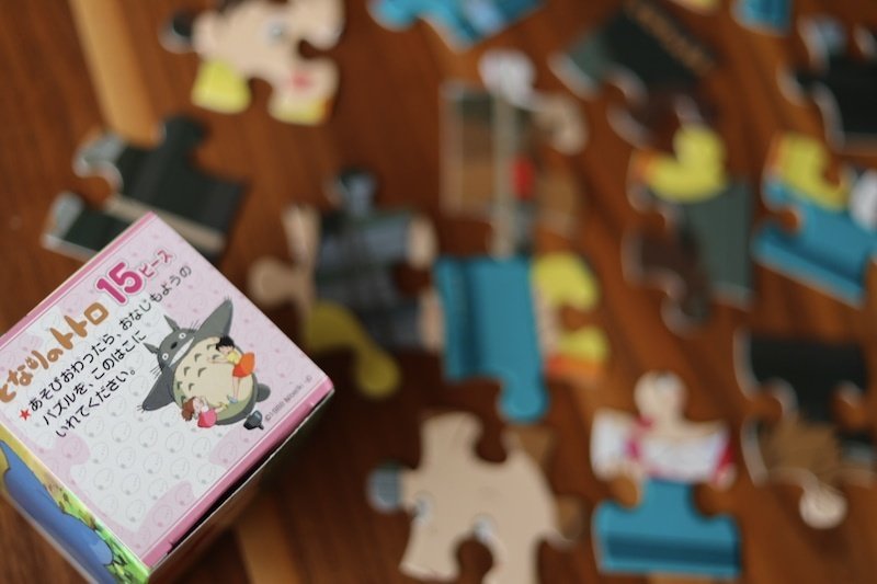 トトロのパズルは15ピースから80ピースまで楽しめます。息子は好きなキャラクターを取り入れるほうが集中して楽しめるのでトトロを選びました。使っていたものはこちら↓