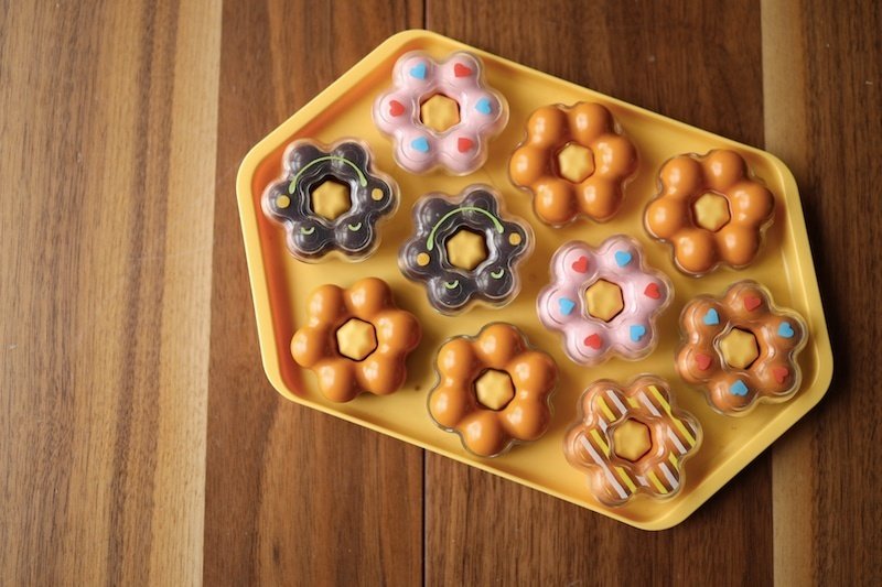 こちらは3歳の頃によく遊んでいたドーナツ屋さんのエデュトイです。当時お友達との貸し借りのトラブルも多くコミュニケーション能力が身に付くといいなと思い息子と一緒にお店屋さんごっこ遊びをしていました。